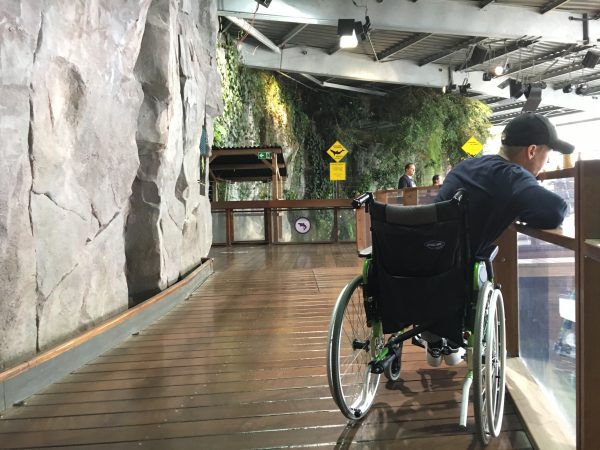 Aucune difficulté n’a été rencontrée. Des ascenseurs sont disposés au fur et à mesure de la visite pour accéder librement aux différentes expositions. Tout au long de la visite, des bancs sont à disposition. Aucun ressaut n’est à franchir.