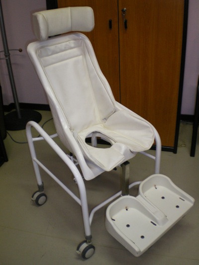 La Jaycare est une chaise de douche avec assise moulée en plastique sur roulettes munies de freins. Le châssis est tubulaire en métal. L’assise percée est inclinable de 5 degrés vers l’avant et de 10 degrés vers l’arrière par un système entièrement mécanique. Il n’y a pas de vérin, ce sont juste 2 tubes qui coulissent l’un sur l’autre. La Jaycare est dotée d’un appui-tête, d’un repose-pieds, d’une housse rembourrée pour l’assise et de sangles pour l’assise et les pieds. La Jaycare coûte 2510,16 Euros TTC dans sa version standard et 2497,25 Euros dans sa version XL. Elle est remboursée 102,62 Euros puisqu’elle est livrée avec un pot de toilettes.