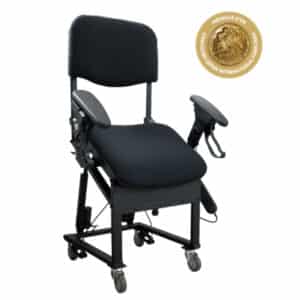 Alyzée est une chaise sur 4 roulettes, équipée d’un dispositif de levage d’assise électrique.