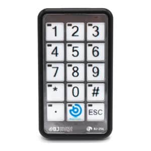 Le format est petit et comprend 15 cases avec un système de pages de 8 niveaux. Un logiciel d’impression des étiquettes permet de personnaliser l’interface. Un guide-doigts est intégré. Cette télécommande est à destination des personnes dépendantes et atteintes de troubles moteurs. Elle peut contrôler 112 appareils domestiques comme par exemple la lumière, les volets électriques, la télévision, l’appel malade… Ce dispositif se charge par USB en 3h. Il peut être utilisé sur table ou bras articulé à positionner au lit, au fauteuil ou différents supports.
