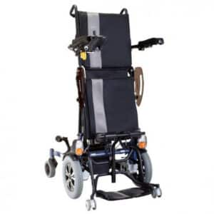 Les pneus sont à bandages. Les roues avant font 8 pouces et les roues arrière font 4 pouces. Des roues stabilisatrices sous les palettes du repose-pied assurent l’équilibre lors de la verticalisation. Un bouton permet de passer à la position assise vers une position verticale. De plus, une inclinaison électrique du dossier assure un réglage de 80 à 120°. La hauteur des repose-pieds sont ajustables sur 7 niveaux. Elles se replient afin de faciliter les transferts. Un support sous-rotulien est réglable en 5 positions. Les repose-bras sont réglables en hauteur et escamotable.