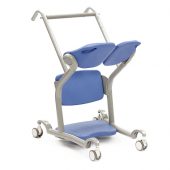 Le repose tibia assure un confort et une stabilité lors des transferts. La stabilité est augmentée par la présence d’une barre transversale au niveau des membres supérieurs. Cette barre permet au patient de supporter son poids en tirant plutôt qu’en poussant limitant les risques de fuite urinaire. L’assise est innovante : elle se décompose en deux parties. Celles-ci sont escamotables permettant un accès frontal. Le support fessier est incliné à environ 45°. Le support de pied est antidérapant. Très simple d’utilisation, ce produit facilitera aussi bien les transferts pour le patient que pour le thérapeute : transferts au lit, aux toilettes, …