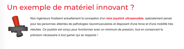 - Concevoir des matériels innovant adaptés aux capacités du joueur.
