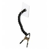 Par fixation à pince, le bras est en plastique flexible. A son bout se trouve une plaque de 10 x 15 cm. Un smartphone, une télécommande ou toute autre chose peuvent y être fixés par velcro (fourni)