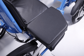 Le véhicule est équipé d’un siège confortable avec revêtement en mousse à mémoire de forme. L’ajout de coussins de genoux aide à stabiliser l’assise et à améliorer le confort postural lors des transferts et déplacements.