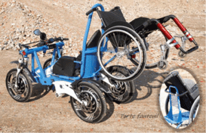 Il s’agit d’un dispositif médical de classe I produit en France dans le 85 à Talmont Saint Hilaire, présenté comme un véhicule électrique tout terrain.