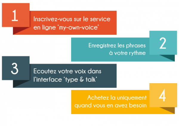 La société Acapela qui développe des logiciels et services de synthèse vocale, étend au marché français sa prestation « My-own-voice ». My-own-voice est un service permettant la création en ligne de sa propre voix numérique : une technique aujourd’hui accessible aux personnes avant une perte prévisible de la parole consécutive à une opération (laryngectomie), ou suite à une maladie neuro dégénérative comme la Sclérose Latérale Amyotrophique. My own-voice nécessite un apprentissage vocal consistant à enregistrer 350 phrases. Après quoi une version numérique est proposée afin de la tester au sein d’une interface de démonstration. Après acquisition, la voix peut être utilisée sur ordinateur ou tablette, en complément d’un logiciel ou application facilitant la communication au quotidien, assistée par une voix de synthèse unique, conservant l’empreinte de la voix originale en termes de timbre, d’accent et d’intonation.