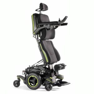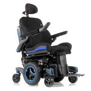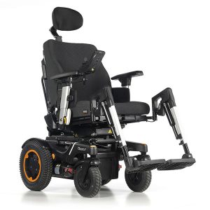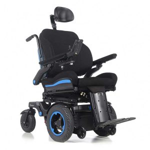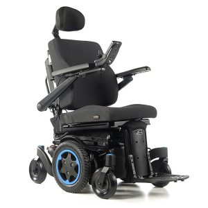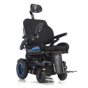 Cette base motrice est à 6 roues avec une largeur hors tout de 62 cm et une longueur hors tout de 128 cm. Très maniable son rayon de giration est de 56 cm. Dimensions des roues centrales : 13 pouces. Son autonomie est de 32 km pour des batteries de 60 Ah ou 80 Ah. La vitesse maximale est de 10 km/h avec moteur 4 pôles – 450 W ou de 8-6 km/h avec moteur 4 pôles – 500 W. Le Q500 M dispose de l’articulation Spider Trac (châssis articulé). La garde au sol est de 7.5 cm. Le poids maximum utilisateur est de 160 kg. Le poids du fauteuil est de 130 kg.