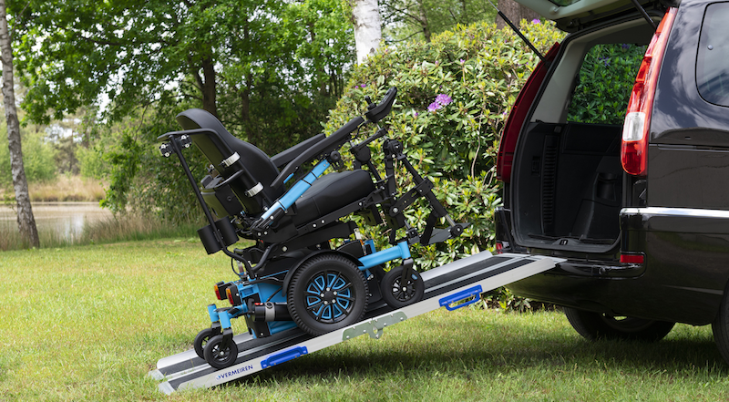 Vermeiren propose un modèle de rampes pliables nommé 692 à son catalogue, particulièrement adapté pour chargé un fauteuil roulant ou un scooter dans son véhicule.