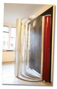 Paroi de douche arrondie et rabattable Kaiser Vario fabriqué par Dirk Kaiser