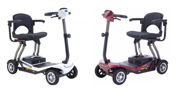 Le Scorpius est le tout nouveau scooter 4 roues pliable de chez Invacare. Il existe deux versions : pliable manuellement (Scorpius) ou électriquement (Scorpius A). Sa conception a été pensée pour les personnes souhaitant conserver une vie active sans être gênée par le manque d’espace de stockage et/ou de transport. Son utilisation peut être en intérieur et en extérieur aménagé (pas de chemin irrégulier) car ces scooters sont dotés de roues à bandage de 8 pouces. Par rapport à la gamme des scooters proposés par Invacare : le Scorpius se situe entre le Colibri et le Léo. Il dispose de plus de fonctionnalités que le Léo ainsi qu’un équipement route mais ses réglages et son usage sont inférieurs au Léo.