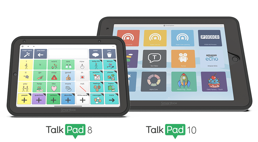 Les Talk Pad 8 et 10 sont des tablettes de communication robustes et portables, idéales pour les enfants, adolescents et adultes ayant des besoins en communication alternative. Basés sur des iPads (8,3″ pour le Talk Pad 8 et 10,2″ pour le Talk Pad 10), ils sont intégrés dans une coque renforcée avec haut-parleur intégré, offrant une autonomie jusqu’à 10 heures pour une utilisation quotidienne sans interruption. Ces dispositifs sont livrés avec le logiciel Grid pour iPad, permettant une communication par symboles ou texte, avec des voix de synthèse naturelles adaptées aux enfants et aux adultes. Le logiciel offre des options de conjugaison automatique et une interface intuitive.