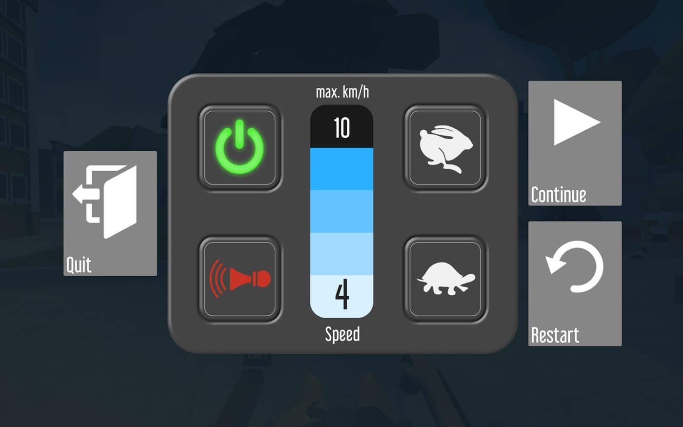 WheelSim Home se caractérise par une navigation simple dans les menus et offre des options de réglage variées pour s’adapter à l’utilisateur. Ainsi, la vitesse maximale du fauteuil roulant électrique peut être réglée (5 niveaux de vitesse). Il en est de même pour le dispositif de commande qui peut être modifié en fonction des préférences et capacités de chacun : touches clavier, périphériques USB, manettes de jeu adaptées ou encore souris alternatives. Les menus sont intuitifs et ne posent pas de problèmes pour une utilisation francophone malgré le fait qu’ils ne soient disponibles qu’en anglais et en allemand.