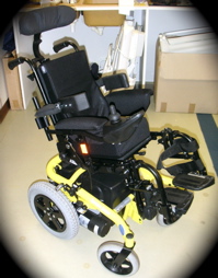 Dans la gamme des fauteuils roulants actifs, nous avons retenu le Néon de la société Sunrise. Ce fauteuil roulant manuel actif est pliant. Les tubes de l’assise se clipsent sur l’intérieur du châssis permettant de rabattre complètement le dossier. Il devient alors compact, facilitant l’embarquement du fauteuil dans une voiture. Il possède beaucoup de réglages ce qui le rend adaptable à toutes situations. Les roues avant peuvent être lumineuses. Il existe en 27 coloris différentes et 6 coloris de toiles. Le prix du NEON est de 1890 € TTC, varible selon les options et le modèle, remboursé à 558,99 €.