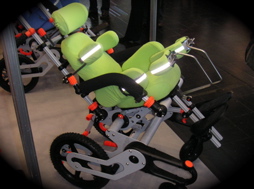 La POUSSETTE MULTIPOSITION CHUNK, aux couleurs attrayantes, est importée en France par Icare. Créée sous l’impulsion d’un industriel de l’aérospatiale américain pour sa fille handicapée, Chunk permet des réglages très fins en terme de positionnement : abduction, inclnaison de dossier, bascule d’assise réglable soit jusque 20° soit jusque 45°. Il existe différents types de châssis mais une seule taille. Trois tailles d’assise différentes sont disponibles : quand l’enfant grandit, il est possible de ne changer que l’assise. Le châssis est gris métallisé. Les quatre couleurs de revêtement d’assise sont le noir, le rose, le bleu ou vert. Ces trois dernières couleurs sont assez voyantes, dirons-nous. La Chunk coûte environ 3000 € HT hors option. Elle est prise en charge par la sécurité sociale à hauteur de 962.20 €.
