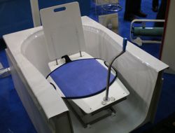 La société Petermann, déjà connue en France, sort un élévateur de bain, technologiquement pourtant moins évolué, mais qui semble répondre à un besoin ! Aucune énergie autre que l’énergie humaine n’est nécessaire au bon fonctionnement du Peter Pan. Une manivelle amovible placée à l’avant du siège doit être actionnée pour lever et abaisser le siège. Le Peter Pan supporte un poids de 135 kg : il lève de 7 cm jusque 43 cm (mesure prise à partir du fond de la baignoire). Le châssis en acier inoxydable est garanti 10 ans ! Il est fixé à la baignoire à l’aide de 4 ventouses. Le dossier est amovible : sans le dossier, le Peter Pan peut être utilisé dans une baignoire à bulles. Il est livré avec un disque de transfert.