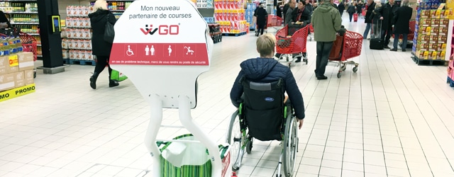 Nous avons eu l’occasion au cours d’une visite au centre commercial Englos les Géants de tester le Robot d’assistance Wiigo