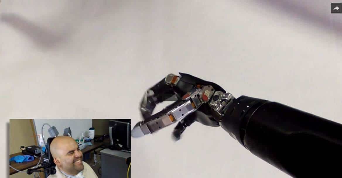 Par la pensée, un homme atteint de tétraplégie lève son verre !
