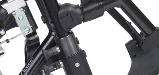 Utilisable à droite comme à gauche, elle s’adapte au fauteuil roulant manuel afin de relier le repose-pieds à la roue directrice située du côté du membre inférieur valide de l’utilisateur.