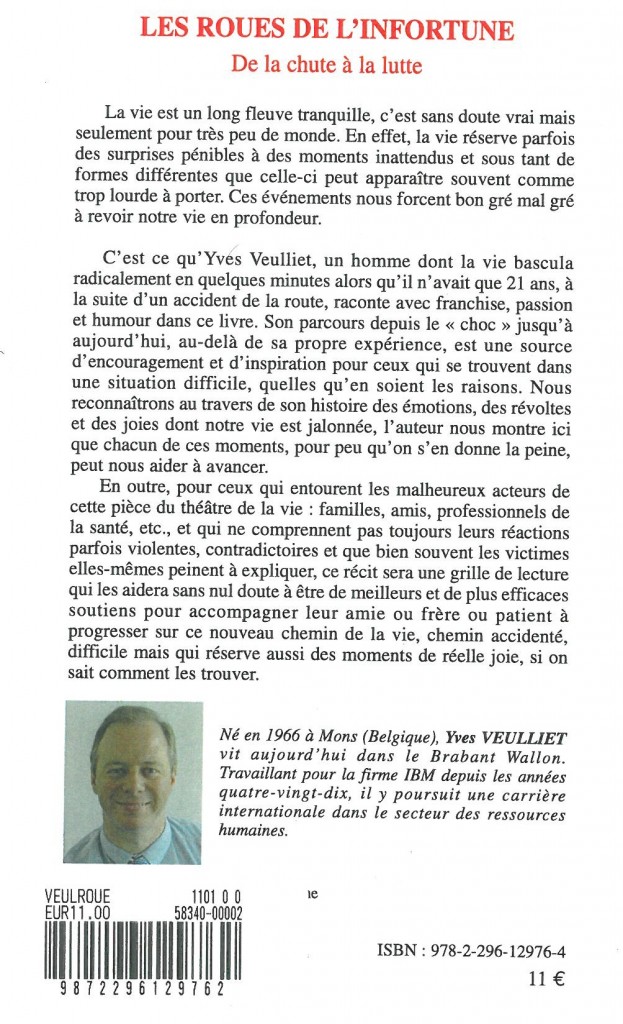 C’est ce qu’Yves VEULLIET, un homme dont la vie bascula radicalement en quelques minutes alors qu’il n’avait que 21 ans, à la suite d’un accident de la route, raconte avec franchise, passion et humour dans ce livre. Son parcours depuis le « choc » jusqu’à aujourd’hui, au-delà de sa propre expérience, est une source d’encouragement et d’inspiration pour ceux qui se trouvent dans une situation difficile, quelles qu’en soient les raisons. Nous reconnaîtrons au travers de son histoire des émotions, des révoltes et des joies dont notre vie est jalonnée, l’auteur nous montre ici que chacun de ces moments, pour peu qu’on s’en donne la peine, peut nous aider à avancer.