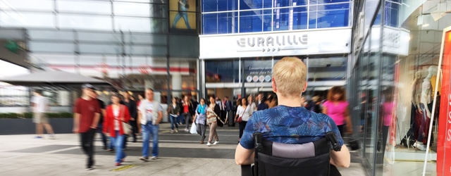Nous nous sommes rendus en fauteuil roulant manuel au centre EURALILLE en prenant le métro lillois. De nos locaux à la station de métro, le périple débuta …
